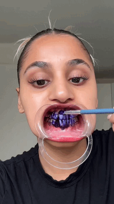 Le violet annule les nuances jaunes sur les dents, les rendant plus blanches. C'est vraiment génial non ?